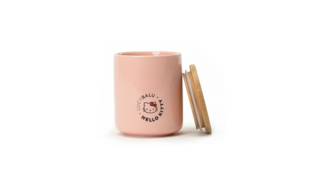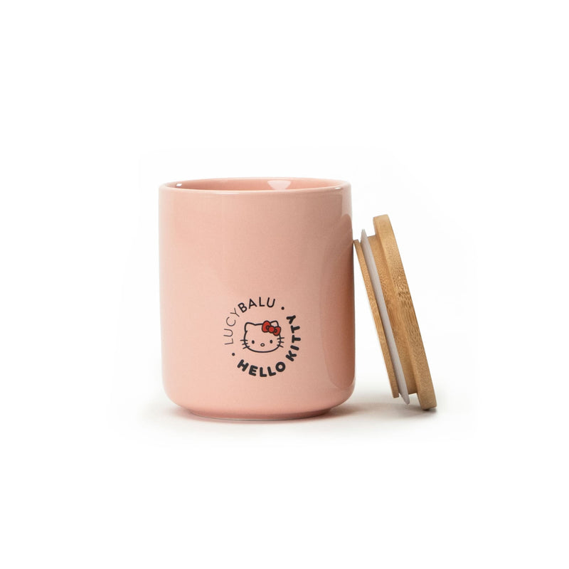 Perfecte schuilplaats voor traktaties! Porseleinen pot van hoge kwaliteit met luchtdicht bamboe deksel en schattige Hello Kitty print.