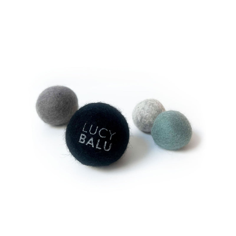 Entdecke die Vielfalt im Spiel mit deiner Katze Das Joy Set wird in liebevoller Handarbeit hergestellt und besteht aus 100% natürlicher Schafwolle aus Neuseeland (mit Ausnahme des Sound Balls, wo sich im inneren ein Glöckchen befindet). Filz begeistert Katzen. Er sorgt durch seinen natürlichen Geruch automatisch für Wohlbefinden und fühlt sich einfach gut an. Die beiden kleiner gehaltenen Spielbällchen motivieren vor allem junge als auch schüchterne Katzen zum angeregten Spielen. Der Sound Ball mit Glöckchen bringt ein zusätzliches Element in dein tägliches Spiele-Ritual mit deinem Stubentiger. Und der größere LucyBalu-gebrandete Filzball ist für selbstbewusste Jäger gedacht.