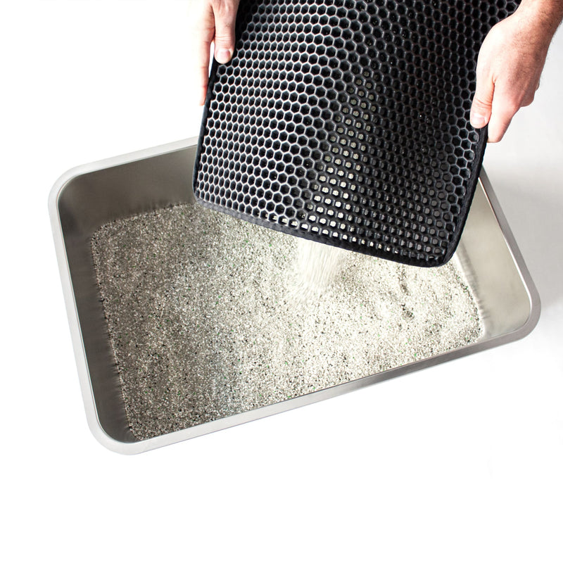 • Pootvriendelijk. Het honingraatoppervlak is zacht voor gevoelige kattenpootjes en tegelijkertijd een effectieve kattenbakvanger.