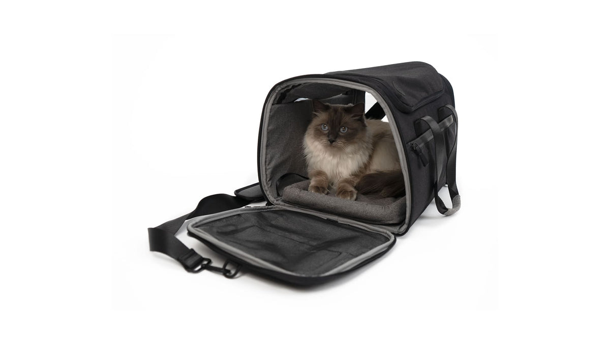 De reistas voor katten. Een tas voor jetsetters. Huisdiervriendelijke functionaliteit ontmoet minimalistisch ontwerp. Voor stijlvolle reisjes met je kat - klaar om in te checken!