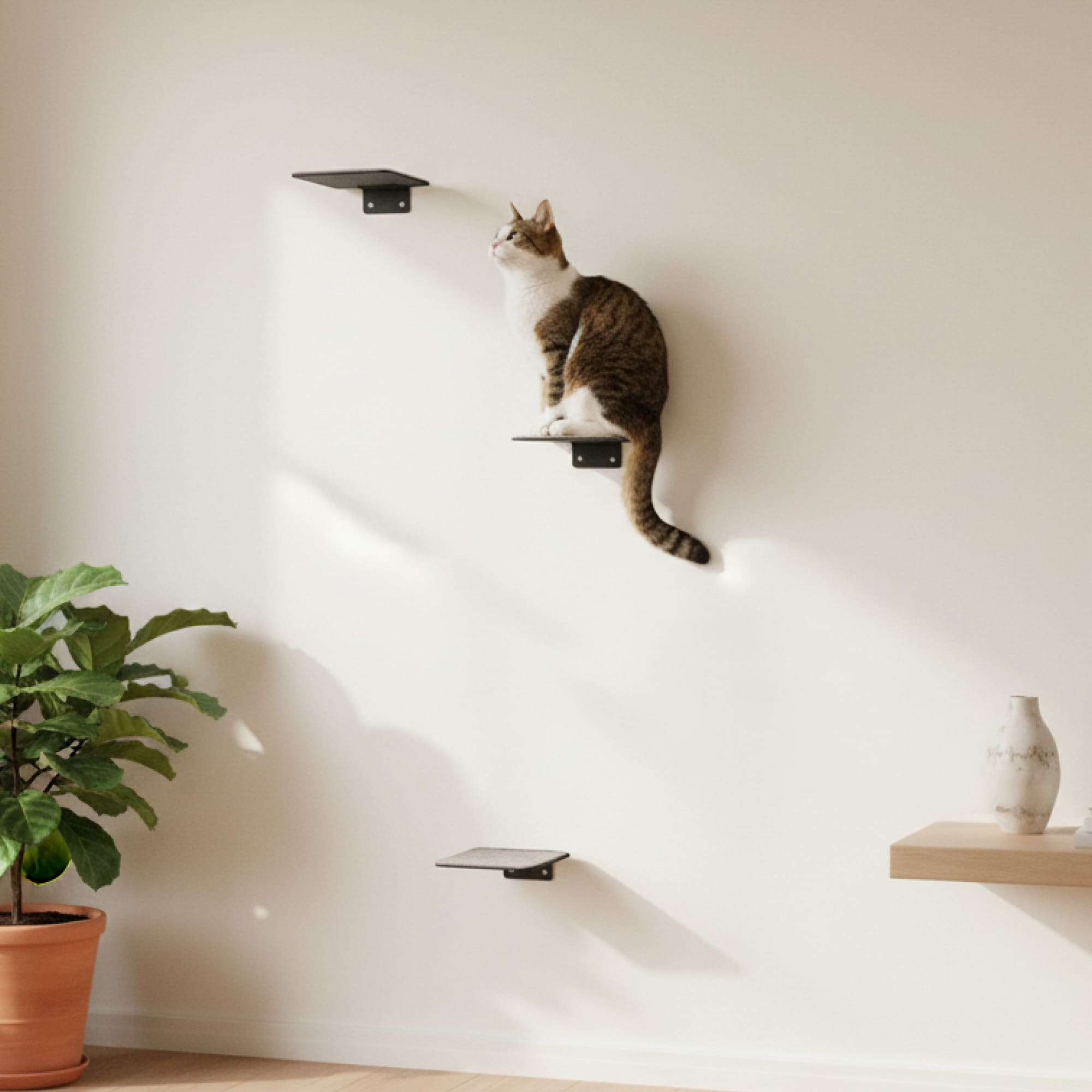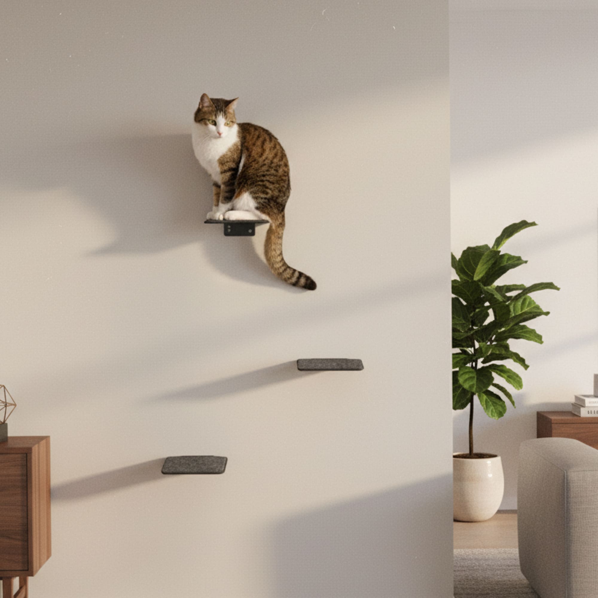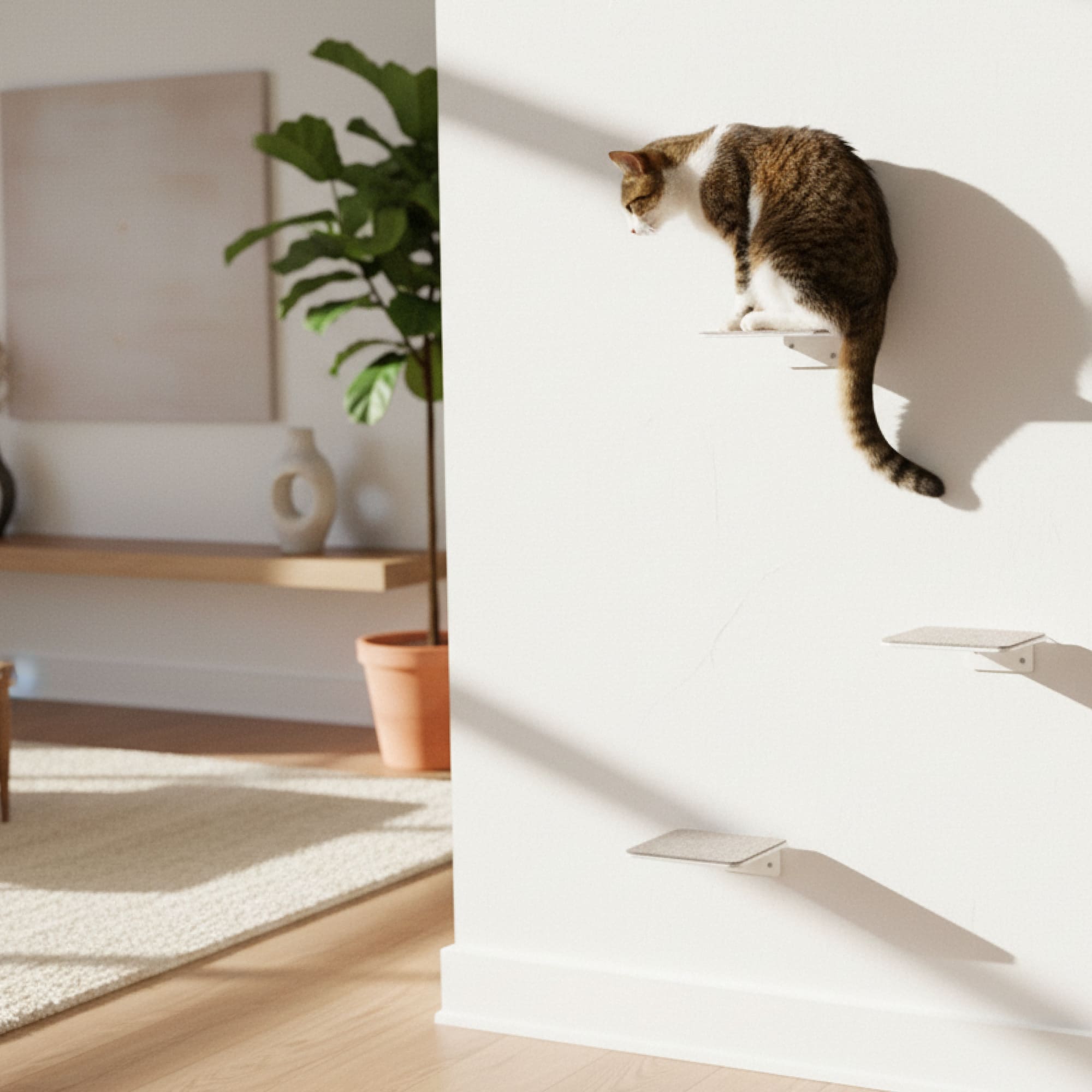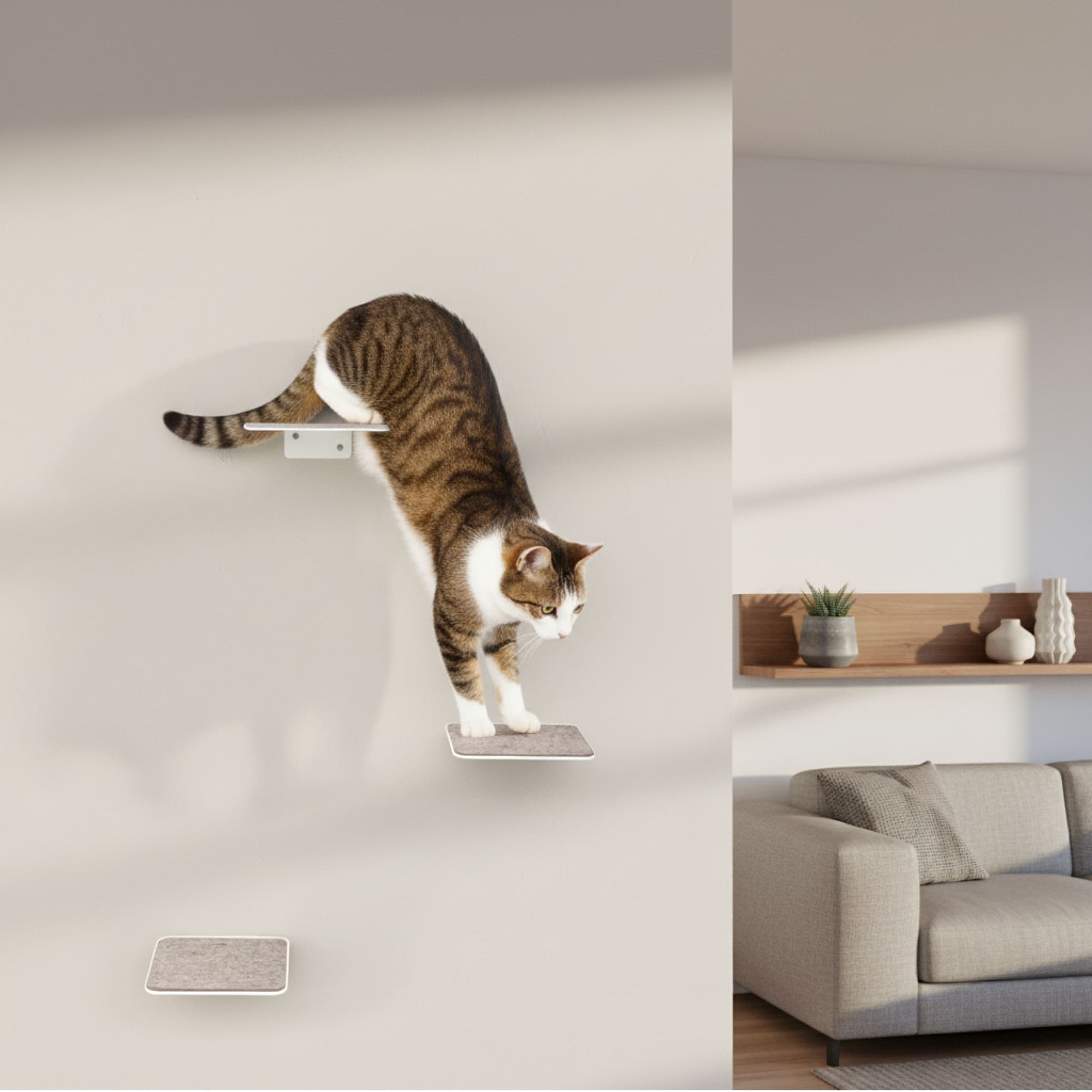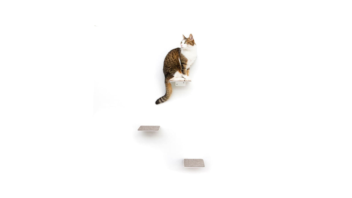 De STEPS klimtreden maken het gemakkelijk om een speeltuin te creëren. De kat heeft veel meer ruimte beschikbaar zonder dat de filigraan ontworpen klimtreden ruimte innemen.